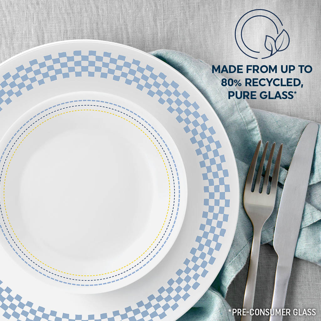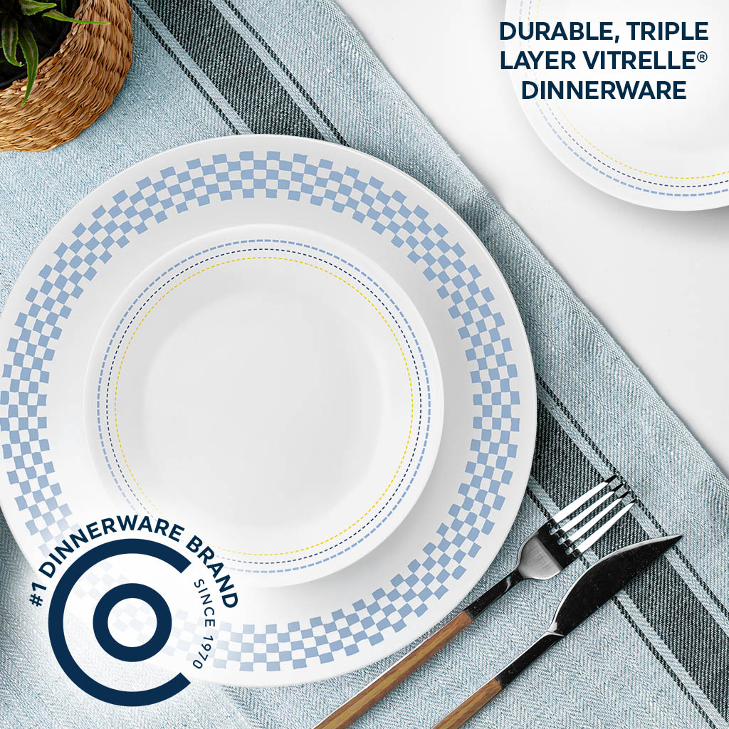 Crafted using a unique sandwich construction that bonds three layers of special glass materials, Corelle dinnerware is lightweight yet highly resistant to breaking, cracking, chipping, scratching, and permanent staining. -